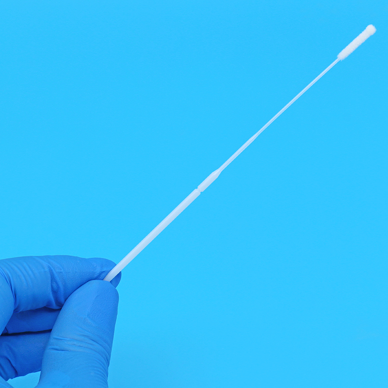 植绒拭子的垂直短纤作用类似于软刷,在采样过程中让使用者没有异物感。这种舒适的设计有助于提高受检者的接受度,减少采样过程中的不适和抵触情绪。同时植绒拭子的杆部通常采用医用级ABS塑料制成,细长柔软,能贴合鼻腔结构,减少采样时的不适感。其独特的折断点设计也使拭子头可轻松放入采样保存管中,与保存液紧密适配,防止样本泄漏,提升转运安全性。